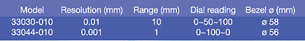 - Each dial gauges has an individual manufacturing number and is accompanied by a test certificate indicating its error curve.